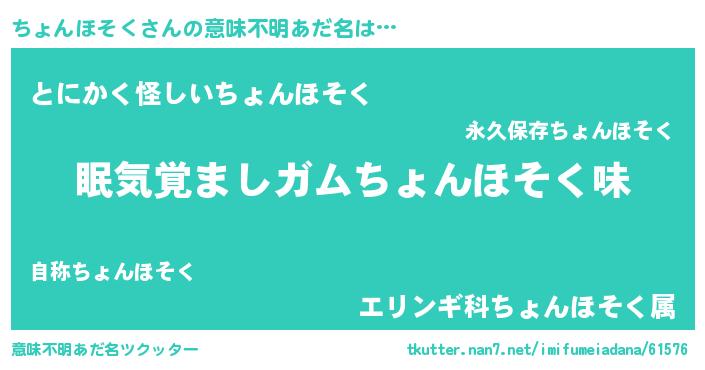 | ヒーロー風カッコイイあだ名 | 『正義の使者ちょんほそく』 |