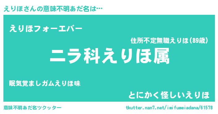 | 女子向けラノベタイトル風あだ名 | 『えりほの玉の輿計画!』 |