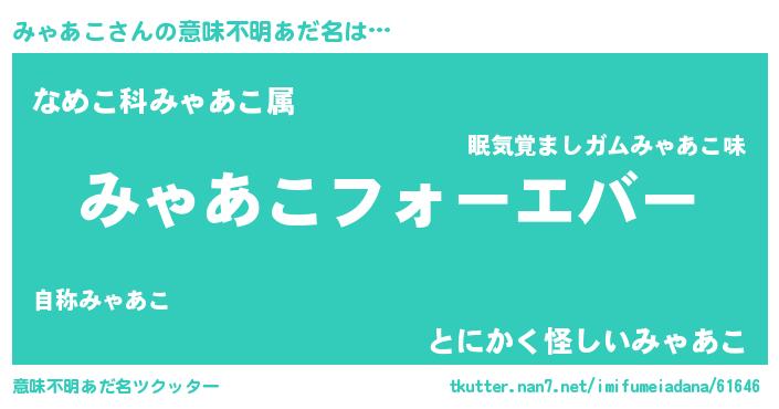 | ヒーロー風カッコイイあだ名 | 『ウルトラみゃあこマン』『銀牙騎士ミャ』 |