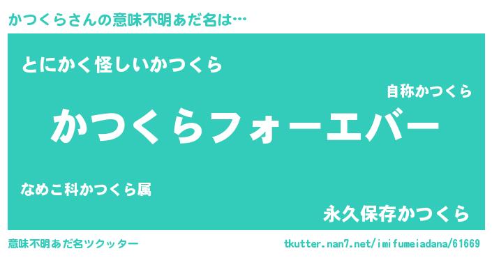 | ヒーロー風カッコイイあだ名 | 『ウルトラかつくらマン』『黄金騎士カツ』 |