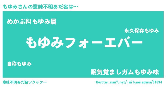 | ヒーロー風カッコイイあだ名 | 『ウルトラもゆみマン』『ネオモユミ』 |