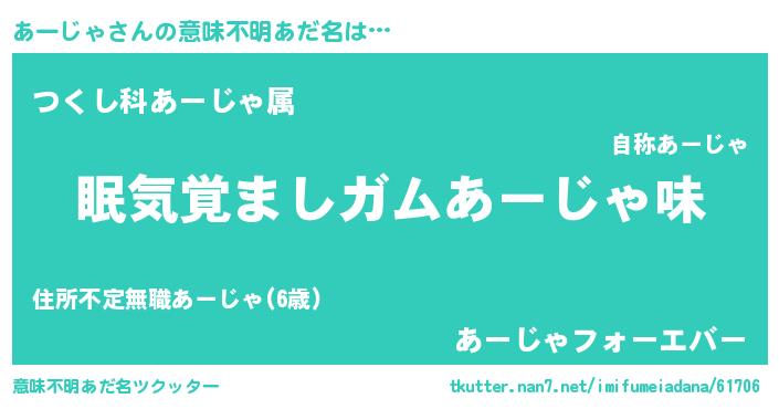 | 女子向けラノベタイトル風あだ名 | 『あーじゃ恋絵巻』『闇のあーじゃ』 |