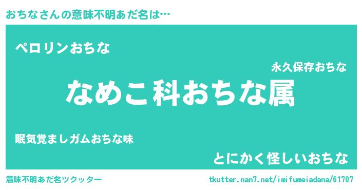 | 女子向けラノベタイトル風あだ名 | 『おちなの玉の輿計画!』『おちな恋絵巻』 |