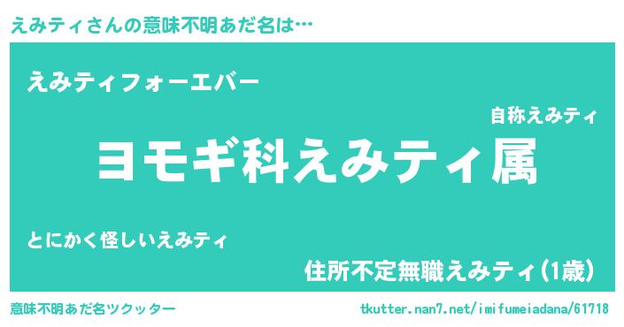 | 欧米人風あだ名 | 『えみティ・ステッグマイヤー』 |