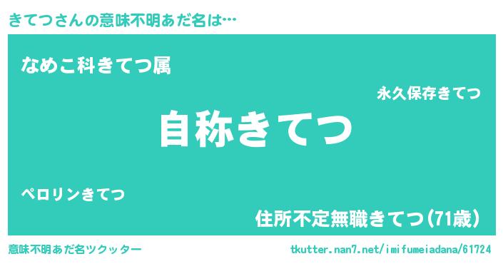| 男性向けラノベタイトル風あだ名 | 『Re:きてつから始める異世界生活』 |