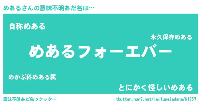 | ヒーロー風カッコイイあだ名 | 『ウルトラめあるマン』『魔戒騎士メア』 |