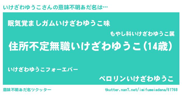 | 女子向けラノベタイトル風あだ名 | 『悪役いけざわゆうこに転生したようですが、知った事ではありません』 |