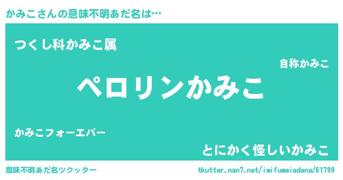 | 女子向けラノベタイトル風あだ名 | 『かみこ姫と円卓の騎士』『闇のかみこ』 |