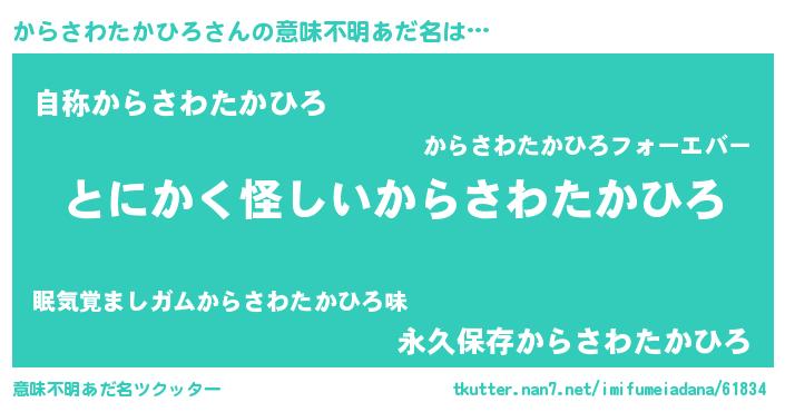 | ヘコむあだ名 | 『からお』『からさわたかひろ(小並感)』 |
