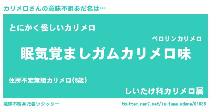 | 女子向けラノベタイトル風あだ名 | 『死神カリメロの再婚』 |