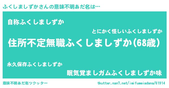 | 料理風あだ名 | 『ふくしましずかのカルパッチョ風』 |