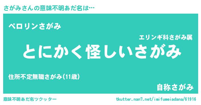 | ポケモン風あだ名 | 『サガゴンZ』『ヒサガミ』 |