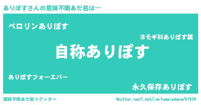 | ヘコむあだ名 | 『ありにゅー』『ありぽす(遠い目)』 |