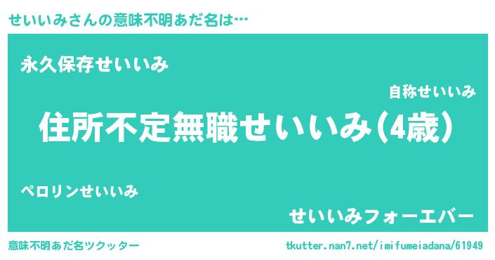 | ヒーロー風カッコイイあだ名 | 『仮面セイダー』『ネオセイイミ』 |