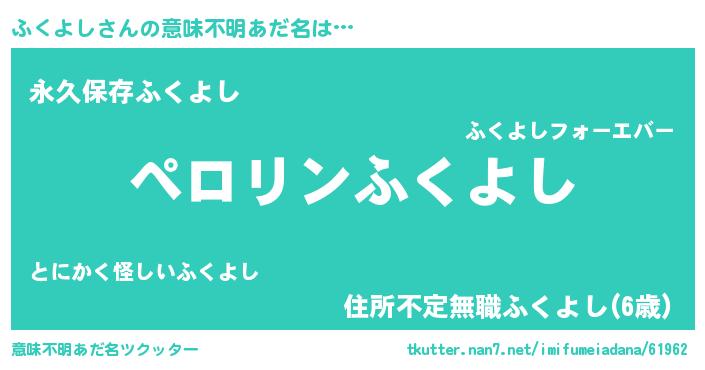 | 男性向けラノベタイトル風あだ名 | 『ふくよしの憂鬱』 |
