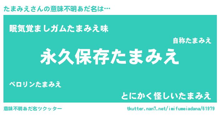 | ヘコむあだ名 | 『たまみえ(遠い目)』『たまぷりん』 |