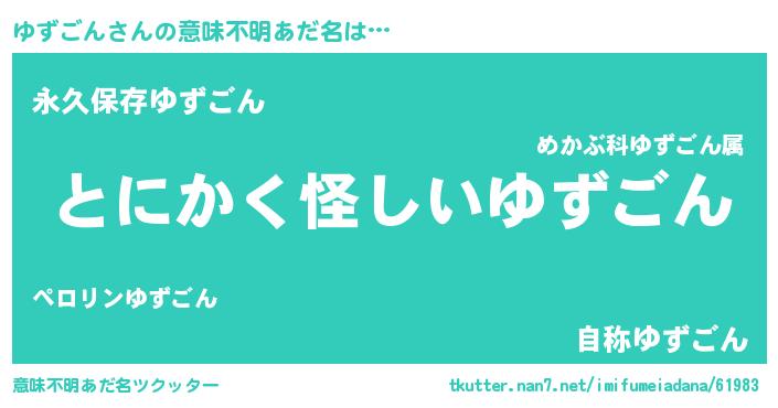 | 女子向けラノベタイトル風あだ名 | 『ゆずごんの卵を拾いまして』 |