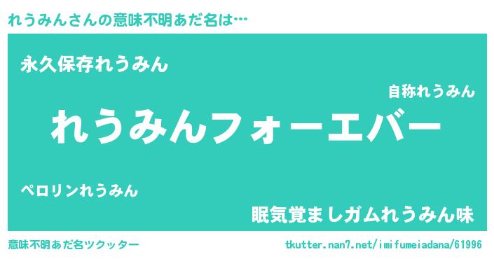 | ヒーロー風カッコイイあだ名 | 『ウルトラれうみんマン』『ネオレウミン』 |