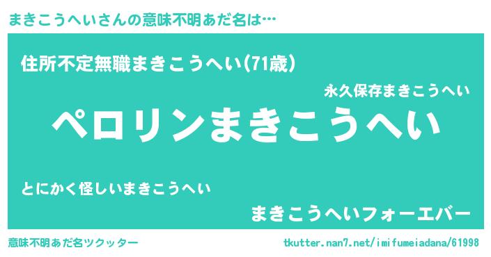 | ヒーロー風カッコイイあだ名 | 『スーパーマキコウヘイ』『仮面マキダー』 |