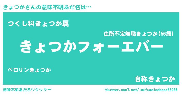 | 欧米人風あだ名 | 『きょつかクリステル』 |