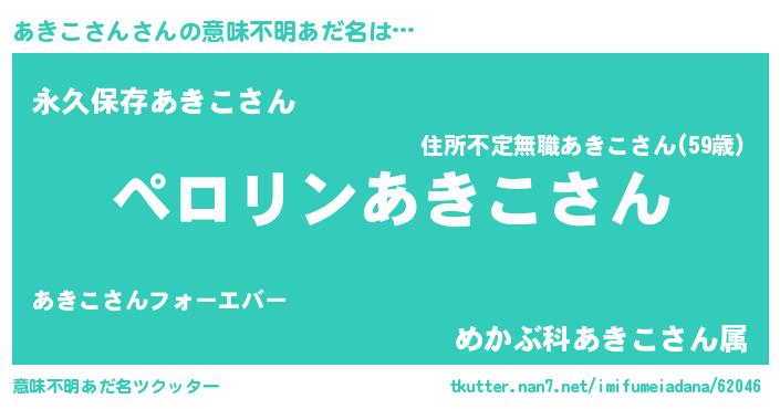 | 欧米人風あだ名 | 『マイケルあきこさん』 |
