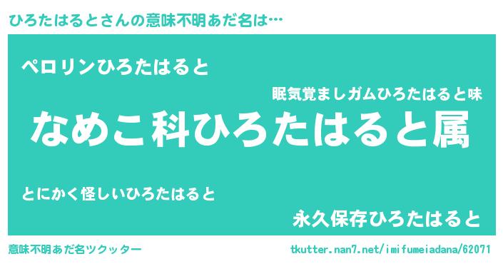 | 男性向けラノベタイトル風あだ名 | 『転生したらひろたはるとだった件』 |