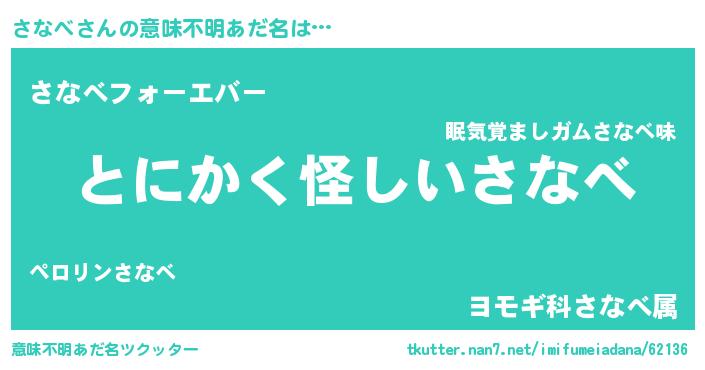 | ヒーロー風カッコイイあだ名 | 『炎刃騎士サナ』『ウルトラさなべマン』 |