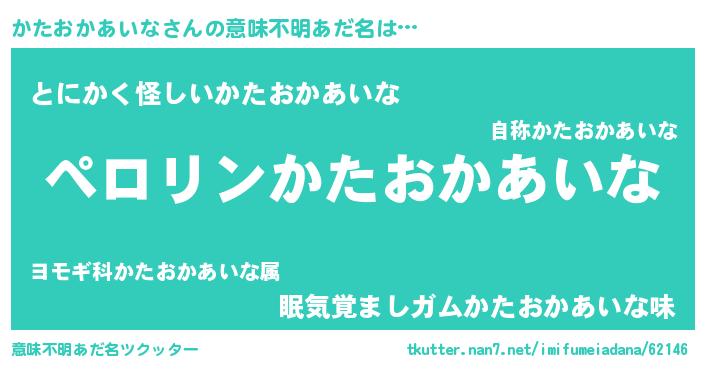 | ポケモン風あだ名 | 『カタチュウ』『ヒカタオカアイナ』 |