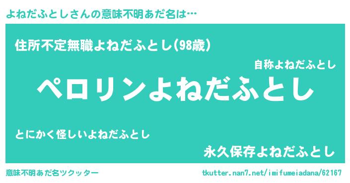 | 胡散臭い通販商品みたいなあだ名 | 『億万長者になれる水晶球…その名も「よねだふとし」』 |