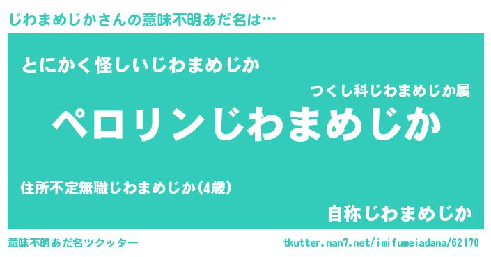 | ヒーロー風カッコイイあだ名 | 『スーパージワマメジカ』『銀牙騎士ジワ』 |