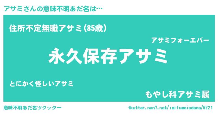 | 欧米人風あだ名 | 『アサミ・ステッグマイヤー』 |