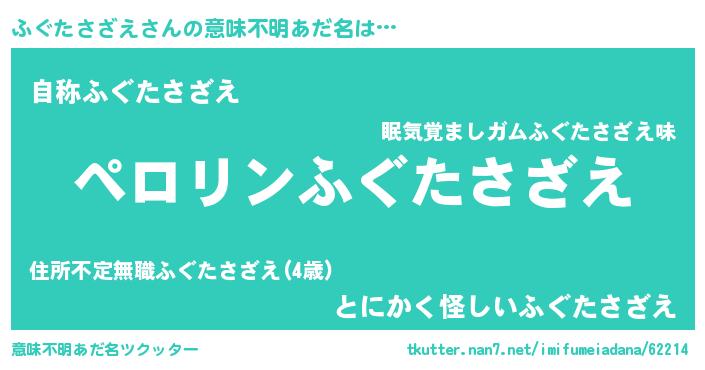| 女子向けラノベタイトル風あだ名 | 『(仮)ふぐたさざえのやんごとなき事情』 |
