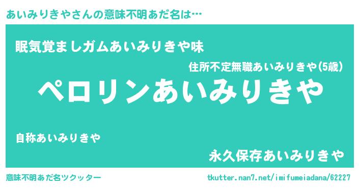 | 胡散臭い通販商品みたいなあだ名 | 『モテモテ間違いなし霊験あらたかなお札…その名も「あいみりきや」』 |