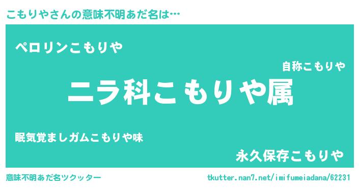 | 胡散臭い通販商品みたいなあだ名 | 『億万長者になれるブレスレット…その名も「こもりや」』 |