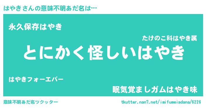 | ヘコむあだ名 | 『はやっちょ』『はやき(遠い目)』 |