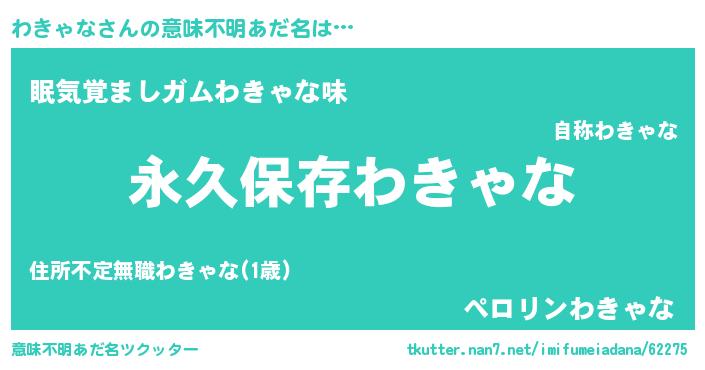 | 男性向けラノベタイトル風あだ名 | 『誰もが恐れるあのわきゃなが、ぼくの専属メイドになるようです。』 |