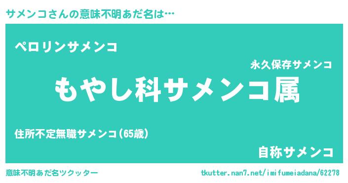 | 男性向けラノベタイトル風あだ名 | 『転生したらサメンコだった件』 |