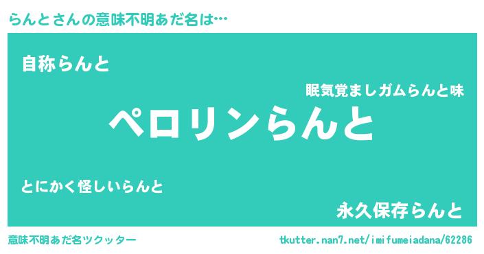 | 胡散臭い通販商品みたいなあだ名 | 『必ず成功するブレスレット…その名も「らんと」』 |