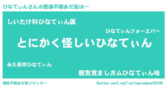 | 女子向けラノベタイトル風あだ名 | 『ひなてぃんは平凡を望む』 |