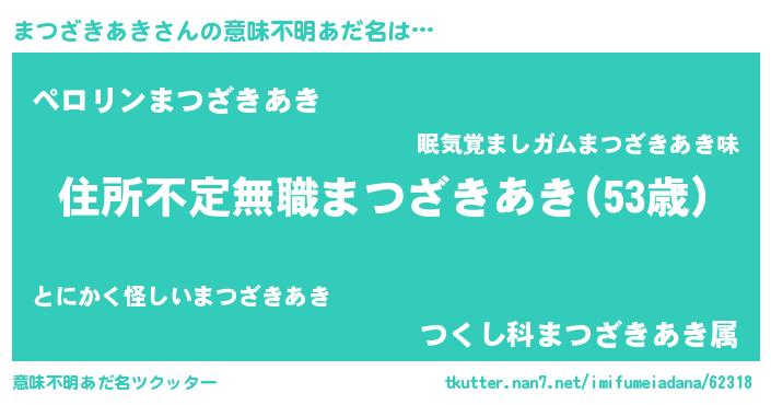 | 女子向けラノベタイトル風あだ名 | 『乙女ゲームの破滅フラグしかない悪役まつざきあきに転生してしまった…』 |