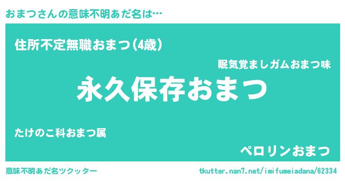 | 男性向けラノベタイトル風あだ名 | 『おまつという概念が存在しない退屈な世界 』 |