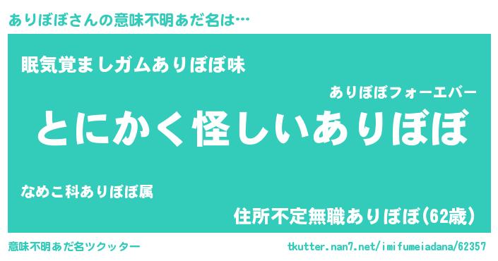 | 欧米人風あだ名 | 『ありぼぼ・ステッグマイヤー』 |