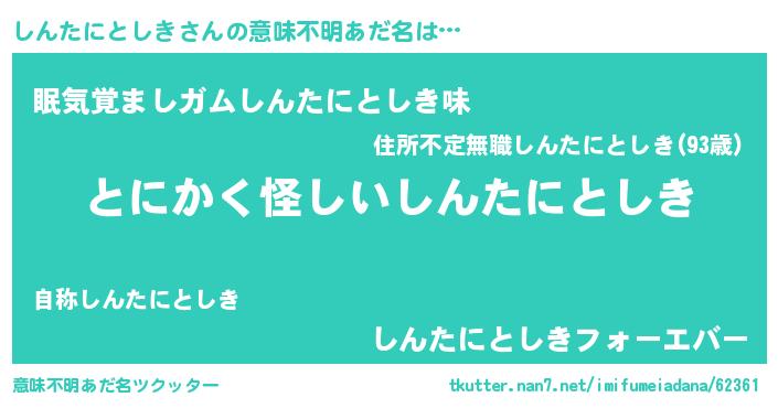 | ポケモン風あだ名 | 『ヒシンタニトシキ』『シンゴンZ』 |