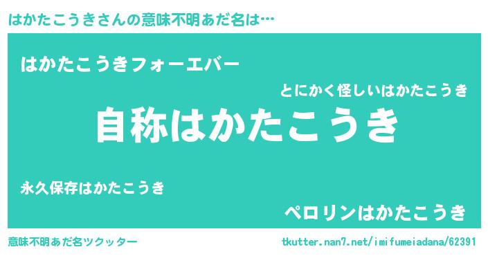 | 欧米人風あだ名 | 『はかたこうき・ステッグマイヤー』 |