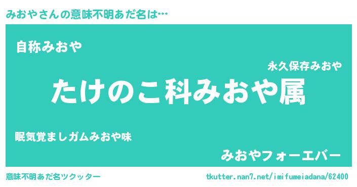 | ヘコむあだ名 | 『豆乳』『みおや(苦笑)』『みおもー』 |