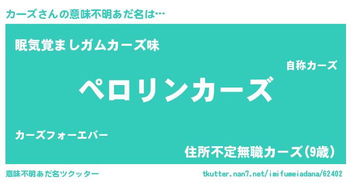 | 男性向けラノベタイトル風あだ名 | 『カーズアートオンライン』 |