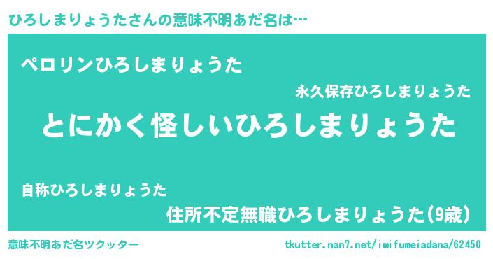 | 胡散臭い通販商品みたいなあだ名 | 『信頼と実績のサプリメント…その名も「ひろしまりょうた」』 |