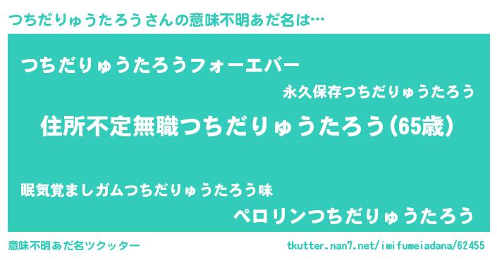| 男性向けラノベタイトル風あだ名 | 『魔弾の王とつちだりゅうたろう』 |