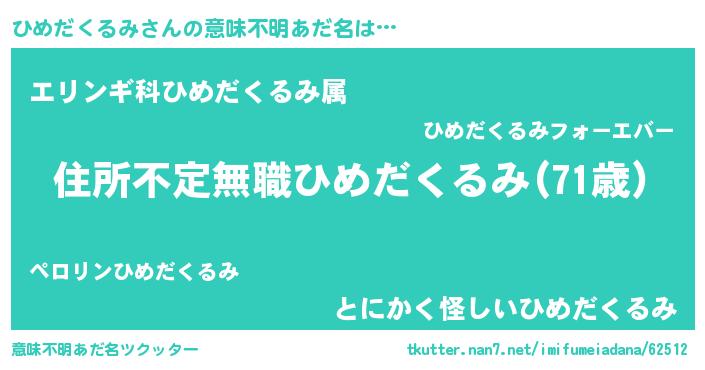 | 男性向けラノベタイトル風あだ名 | 『緋弾のヒメダクルミ』 |