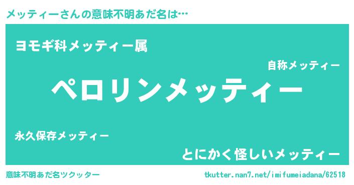 | 男性向けラノベタイトル風あだ名 | 『メッティーの憂鬱』 |
